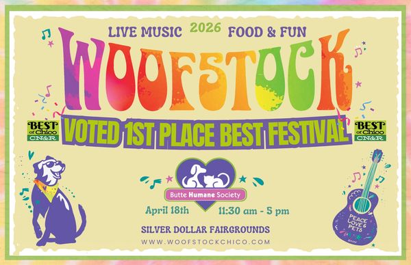 Woofstock Chico is a music & fun festival benefitting the animals of Butte Humane Society. Well behaved dogs on leash and their humans welcome!